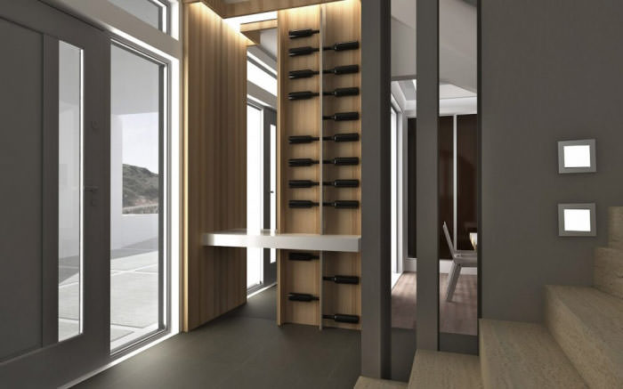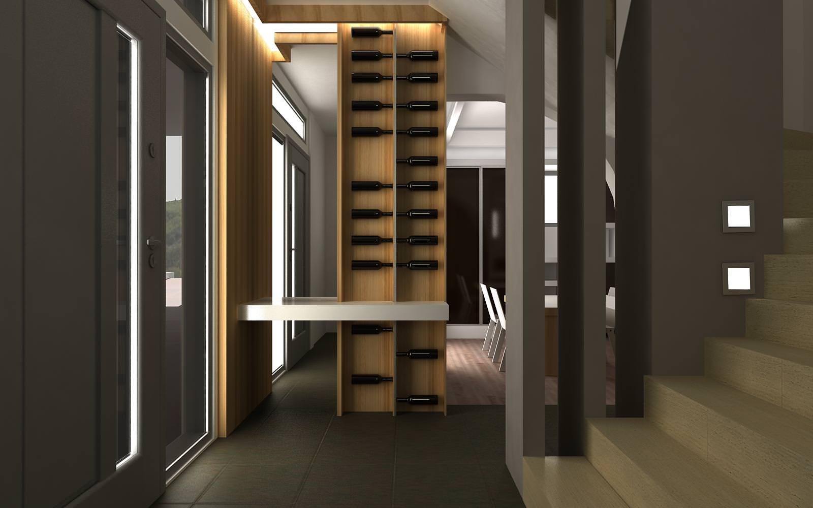 Το έργο βρίσκεται στη περιοχή της Πούντα Ζέζας στο Λαύριο και αφορά στη διαμόρφωση του χώρου εισόδου της κατοικίας και των χώρων διημέρευσης. Ο ισόγειος χώρος εισόδου, που αρχικά περιλάμβανε μόνο το κλιμακοστάσιο και ένα ανεξάρτητο βοηθητικό δωμάτιο με δυνατότητα εισόδου μόνο από έξω διαμορφώθηκε έτσι ώστε να μπορεί να λειτουργεί ενιαία προσφέροντας μια επιπλέον χρήση εκτός αυτής της πρόσβασης στη κατοικία, ως κάβας-καθιστικού για την καλύτερη εκμετάλλευση και των εσωτερικών αλλά και των εξωτερικών χώρων του ισογείου. Τέλος το έργο περιλαμβάνει τον σχεδιασμό της κουζίνας και του living-room σύμφωνα με τις ανάγκες των ιδιοκτητών, αλλά και την αξιοποίηση του χώρου του κλιμακοστασίου στο μέγιστο βαθμό.